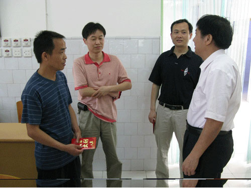 申錦林院長到古丈考察 發(fā)布時間:2009年6月11日 預(yù)覽:4067次 6月4日,院黨委書記、院長申錦林率醫(yī)務(wù)、科教等部門負(fù)責(zé)人赴湘西自治州古丈縣人民醫(yī)院考察,就如何認(rèn)真落實“萬名醫(yī)師支援農(nóng)村衛(wèi)生工程”進(jìn)行詳細(xì)了解并簽訂了相關(guān)協(xié)議??疾飚?dāng)中,還對該院3名特困職工進(jìn)行了慰問。