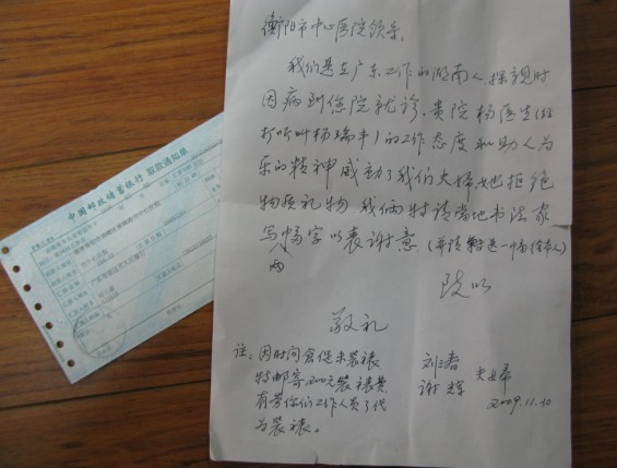 廣東患者遙寄書法作品感謝楊醫(yī)生(圖)