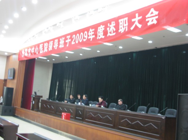 元月18日下午,我院在門診綜合樓21樓多功能會(huì)議廳舉行院領(lǐng)導(dǎo)班子2009年度述職大會(huì)。院黨委書(shū)記、院長(zhǎng)申錦林代表院領(lǐng)導(dǎo)班子以多媒體形式向全院干部職工述職,全院除值班人員外的干部職工及近20名病人代表參加了大會(huì)。市委組織部、市衛(wèi)生局相關(guān)領(lǐng)導(dǎo)對(duì)醫(yī)院領(lǐng)導(dǎo)班子年度工作進(jìn)行考評(píng),并對(duì)我院在全市首創(chuàng)開(kāi)放性及多媒體相結(jié)合的述職形式予以充分肯定。