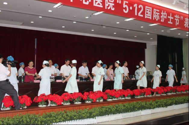 今年是紀念5.12國際護士節(jié)創(chuàng)立100周年,今年護士節(jié)的主題是“營造優(yōu)良執(zhí)業(yè)環(huán)境,提供優(yōu)質護理服務”。為隆重紀念這個節(jié)日,市中心醫(yī)院當天舉行了隆重的慶?;顒?。院黨委書記、院長申錦林在會上發(fā)表講話。3名理論考試“狀元”、3名護理操作“高手”和221名“一線”護士分別受到表彰。