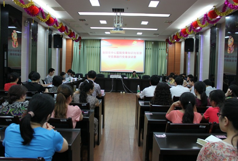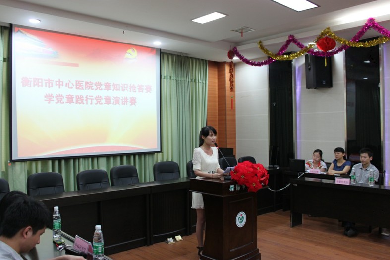 我院舉行黨章知識(shí)搶答賽和學(xué)黨章踐行黨章演講賽 發(fā)布時(shí)間:2013年5月30日 預(yù)覽:2642次 5月29日下午,我院在21樓小會(huì)議室隆重舉行了黨章知識(shí)搶答賽和學(xué)黨章踐行黨章演講賽。 此次比賽分為二個(gè)環(huán)節(jié)。第一個(gè)環(huán)節(jié)是黨章知識(shí)搶答賽,共有5個(gè)支部代表隊(duì)參加;第二個(gè)環(huán)節(jié)是學(xué)黨章踐行黨章演講賽,由各支部派選的6名隊(duì)員參加。 黨章知識(shí)搶答賽環(huán)節(jié)中,各代表隊(duì)踴躍答題,比分交錯(cuò)上揚(yáng),現(xiàn)場(chǎng)氣氛熱烈,觀眾掌聲不斷;演講賽環(huán)節(jié)中,參賽選手精神飽滿、激情飛揚(yáng)的演講,深刻表達(dá)了我院廣大黨員干部對(duì)黨章的學(xué)習(xí)理解和踐行新黨章的決心和信心。 經(jīng)過近2個(gè)小時(shí)的激烈角逐,最終,內(nèi)科支部獲得黨章知識(shí)搶答賽第一名,機(jī)關(guān)支部王穎超獲得學(xué)黨章踐行黨章演講賽桂冠。 此次競(jìng)賽得到了院黨委的高度重視,黨政辦精心組織,院領(lǐng)導(dǎo)親臨現(xiàn)場(chǎng)觀摩并擔(dān)任本次比賽的評(píng)委。通過競(jìng)答賽活動(dòng),進(jìn)一步增強(qiáng)我院黨員干部認(rèn)真學(xué)習(xí)黨章、模范遵守黨章、切實(shí)貫徹黨章、全力維護(hù)黨章的自覺性和責(zé)任感。 (文:冷曉君/圖:李志輝)