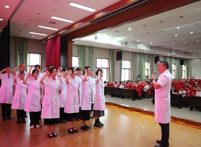 現(xiàn)場,尹軍帶領(lǐng)在場的醫(yī)務(wù)人員重溫了中國醫(yī)師宣誓誓詞,承諾將一如既往維護醫(yī)學(xué)的尊嚴和神圣,敬佑生命,患者至上,努力擔當增進人類健康的崇高職責。