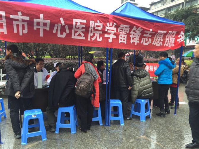 我院開展“學(xué)雷鋒”志愿服務(wù)活動(dòng) 發(fā)布時(shí)間:2015年3月6日 預(yù)覽:4011次 今年是老一輩革命家發(fā)起“向雷鋒同志學(xué)習(xí)”號(hào)召的第52周年。三月,我院積極響應(yīng)號(hào)召吹響了開展“學(xué)雷鋒”志愿服務(wù)活動(dòng)的號(hào)角。 3月4日,我院十余名醫(yī)療專家和陸軍后勤保障旅衛(wèi)生營組成一支醫(yī)療保障隊(duì),在雁峰廣場開展了愛心義診活動(dòng)。3月5日正值元宵佳節(jié),冒著蒙蒙細(xì)雨,我院學(xué)雷鋒志愿者服務(wù)隊(duì)又前往雁峰廣場開展了以“弘揚(yáng)雷鋒精神,創(chuàng)建文明城市”為主題的服務(wù)活動(dòng)?;顒?dòng)現(xiàn)場,醫(yī)療專家們熱心地為前來咨詢的老百姓們檢查身體、測量血壓、普及疾病預(yù)防和保健知識(shí)等,用實(shí)際行動(dòng)向雷鋒同志致敬。 學(xué)習(xí)雷鋒,貴在堅(jiān)持,重在務(wù)實(shí)。據(jù)悉,我院每年都會(huì)開展一系列“學(xué)雷鋒”志愿服務(wù)活動(dòng),并且始終堅(jiān)持將雷鋒精神貫穿于日常的服務(wù)工作當(dāng)中。這不僅是我院積極培育和踐行社會(huì)主義核心價(jià)值觀的有力體現(xiàn),也充分展現(xiàn)出新時(shí)期醫(yī)務(wù)工作者們?nèi)市娜蕫?、甘于奉獻(xiàn)的良好精神風(fēng)貌。 (王穎超)