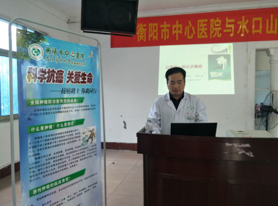 通訊員殷君發(fā)報道 4月15日—21日是第24屆“全國腫瘤防治宣傳周”,今年的主題是“科學抗癌,關(guān)愛生命,抗癌路上,你我同行”。21日,衡陽市中心醫(yī)院腫瘤內(nèi)科一區(qū)主任唐玉成、副主任醫(yī)師劉騫一行6名專家,與水口山職工醫(yī)院一道赴常寧市水口山鎮(zhèn)開展抗癌科普義診活動,當?shù)亟?00名居民前來咨詢義診。