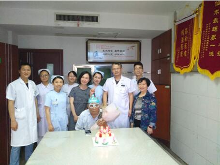 5月2日是汪老85歲的生日,這是他第一次在醫(yī)院過生日,譚曙光主任得知后立即和唐美容護(hù)士長商議,給汪爺爺準(zhǔn)備了一個特別的生日會。并當(dāng)即訂了蛋糕,準(zhǔn)備鮮花,召集管床醫(yī)生及當(dāng)班的醫(yī)務(wù)人員陪伴汪爺爺過生日,送上一份祝福,汪爺爺臉上洋溢著幸福的笑容。