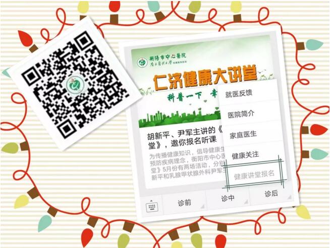 一、請識別下方二維碼,關注衡陽市中心醫(yī)院公眾號后,點擊“診后”——“健康講堂報名”。