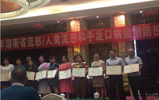 獲獎喜訊 發(fā)布時間:2018年6月30日 預(yù)覽:2315次 通訊員許媛媛報道:2016年至2018年湖南省23家國家級流感監(jiān)測哨點醫(yī)院和15家網(wǎng)絡(luò)實驗室在各級衛(wèi)生計生行政部門的領(lǐng)導(dǎo)下,認(rèn)真組織開展流感監(jiān)測,及時報送有關(guān)信息,為我省科學(xué)研判流感、人感染H7N9流感的病毒變異及疫情趨勢發(fā)揮了重要作用。為樹立典型,弘揚先進(jìn),湖南省衛(wèi)生計生委疾控處于6月25日在長沙舉行“2016年至2018年全省流感監(jiān)測工作表彰大會”,我院被授予“湖南省2016—2018年度流感監(jiān)測工作先進(jìn)集體”,院感科陳瑛同志被授予“湖南省2016—2018年度流感監(jiān)測工作先進(jìn)個人”。