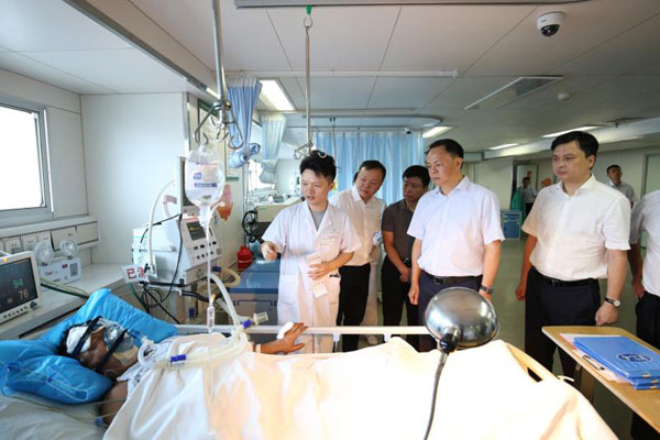 市委書記鄭建新看望6.29交通事故傷員 發(fā)布時(shí)間:2018年7月3日 預(yù)覽:2217次 市委書記鄭建新到醫(yī)院看望6•29交通事故傷員 6月29日晚8時(shí)41分許,河南省駐馬店汽車運(yùn)輸公司一輛大型客車由南往北行駛至京港澳高速衡東段時(shí),沖過中央隔離帶與對向行駛的一輛半掛車相撞,造成重大人員傷亡。 當(dāng)天晚上,我院共接診此次交通事故的傷員3名。醫(yī)院主要領(lǐng)導(dǎo)迅速趕至搶救現(xiàn)場,啟動(dòng)應(yīng)急預(yù)案,開辟綠色通道,成立搶救領(lǐng)導(dǎo)小組和專家小組,檢查、入院、輸液、手術(shù)、護(hù)理、會(huì)診等各項(xiàng)工作有條不紊開展。 6月30日,從深圳招商一線緊急趕回衡陽的市委書記鄭建新安排部署事故救援善后工作后,又風(fēng)塵仆仆趕往衡陽市中心醫(yī)院看望受傷傷員。在聽取醫(yī)院院長申惠龍和黨委書記肖友儒有關(guān)救治情況匯報(bào)后,鄭建新強(qiáng)調(diào),要提升政治站位,認(rèn)真貫徹落實(shí)省委、省政府主要領(lǐng)導(dǎo)指示精神,以最強(qiáng)的醫(yī)療技術(shù)力量和最好的住院條件,全力以赴救治和照顧好每一位傷員。 每看到傷員時(shí),鄭建新首先關(guān)切地詢問傷員的傷情和救治情況,并囑咐傷員安心養(yǎng)傷。他說,衡陽是全國醫(yī)療條件最好的地級市之一,將以最優(yōu)質(zhì)的醫(yī)療、最細(xì)心的看護(hù),想方設(shè)法,動(dòng)用一切可以動(dòng)用的力量,把傷者救治好、照顧好。病房內(nèi),當(dāng)看到志愿者正在幫助照顧傷員,鄭建新囑托大家發(fā)揚(yáng)樂于助人的奉獻(xiàn)精神,展現(xiàn)衡陽良好風(fēng)貌,配合做好傷員的心理疏導(dǎo)和照料工作。 市委常委、常務(wù)副市長廖健參加看望。