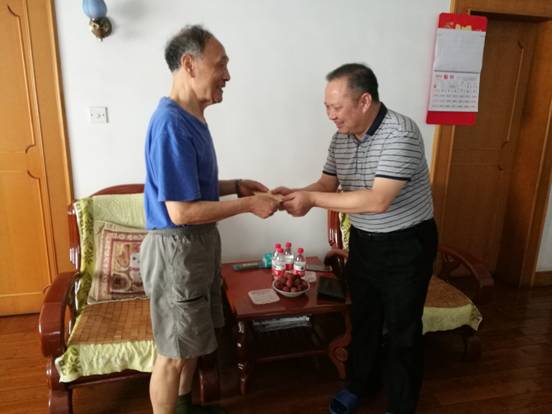 我院開展“七一”走訪慰問活動 發(fā)布時間:2018年7月3日 預(yù)覽:2273次 通訊員唐冠群報道:“七一”前夕,衡陽市中心醫(yī)院黨委組織開展走訪慰問活動。院領(lǐng)導(dǎo)帶領(lǐng)相關(guān)支部負責(zé)人深入老黨員、老干部、省勞模、困難黨員的家中,詳細詢問他們的生活和身體情況,送上慰問金和節(jié)日的問候,囑托他們保重身體,醫(yī)院將時刻關(guān)注大家,并竭盡所能為大家排憂解難。院領(lǐng)導(dǎo)們對他們?yōu)獒t(yī)院的奉獻與付出表示衷心的感謝,并殷切希望各位老黨員、老領(lǐng)導(dǎo)、老專家繼續(xù)關(guān)心關(guān)注醫(yī)院發(fā)展,為醫(yī)院更加美好的明天建言獻策、奉獻智慧!