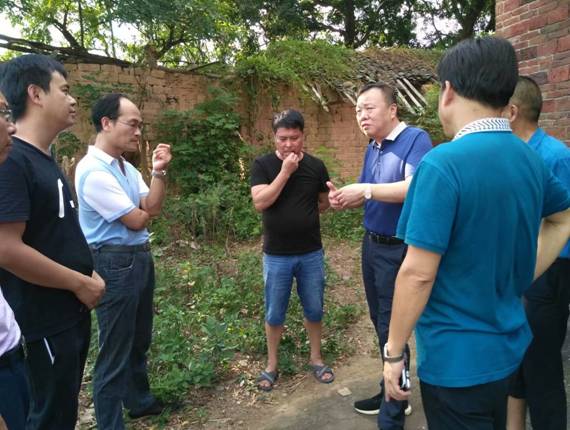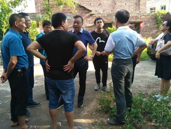 申惠龍?jiān)洪L(zhǎng)(左五)一行與當(dāng)?shù)劓?zhèn)、村干部商討集體經(jīng)濟(jì)事宜