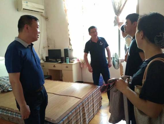 申惠龍?jiān)洪L(zhǎng)(左一)一行查看該院駐村工作隊(duì)隊(duì)員住所