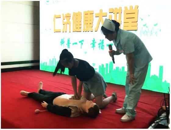 急救就在身邊,專家教您自救互救 發(fā)布時(shí)間:2018年8月8日 預(yù)覽:2517次 通訊員張永明報(bào)道:為增強(qiáng)市民自救互救意識(shí),提高自救互救能力,8月3日,衡陽(yáng)市中心醫(yī)院在院本部門診大廳開展了一場(chǎng)生動(dòng)且實(shí)用的“名醫(yī)仁濟(jì)健康大講堂”急救急診知識(shí)普及教育活動(dòng)。門診大廳座無(wú)虛席,還有不少站立者認(rèn)真旁聽,130余名市民在現(xiàn)場(chǎng)認(rèn)真聆聽了急救知識(shí)講座、觀看了急救示范并參與了互動(dòng)。講座還通過(guò)微信同步直播,場(chǎng)外有近萬(wàn)名網(wǎng)友通過(guò)直播在線聽課,并參與互動(dòng),收到了良好效果。 這次仁濟(jì)健康大講堂,由市中心醫(yī)院急危重癥中心主任兼急診醫(yī)學(xué)科主任、主任醫(yī)師歐陽(yáng)茴香主講《急救就在身邊》。歐陽(yáng)茴香主任以深入淺出、通俗易懂、圖文并茂的方式為市民闡述了自救、互救的重要意義。他在講座中提到,傷病員突發(fā)疾病的10分鐘搶救非常重要,“急救白金10分鐘”是指突遇心腦血管引發(fā)的心肌梗塞、心絞痛及溺水等傷病發(fā)生后的10分鐘,患者能否得到及時(shí)、正確的救治尤為關(guān)鍵。據(jù)相關(guān)部門統(tǒng)計(jì),一般意外發(fā)生后的前10分鐘若得不到及時(shí)救治,患者死亡率將高達(dá)50%以上,這也正是向群眾普及急救知識(shí)的必要性所在,一旦大家都掌握了基礎(chǔ)的急救常識(shí),則能極大提高醫(yī)務(wù)人員對(duì)患者救治的成功率。 據(jù)悉,衡陽(yáng)市中心醫(yī)院1985年成立急診醫(yī)學(xué)科,2010年被國(guó)家衛(wèi)生部國(guó)際緊急救援中心認(rèn)定為“網(wǎng)絡(luò)醫(yī)院”,今年上半年相繼成立了胸痛、卒中中心,為急、危、重癥病人開辟綠色通道,依托院本部和華新分院的強(qiáng)大資源,急救網(wǎng)絡(luò)覆蓋雁峰區(qū)、蒸湘區(qū)、華新開發(fā)區(qū)3個(gè)區(qū)約70萬(wàn)人口,實(shí)現(xiàn)了院前與院內(nèi)急救無(wú)縫銜接,對(duì)急性創(chuàng)傷、休克、昏迷、急性中毒、心腦血管急癥、各種急危重癥、心肺腦復(fù)蘇及突發(fā)公共衛(wèi)生事件等救治和監(jiān)護(hù)經(jīng)驗(yàn)豐富,有效提高了搶救各類急、危、重癥病人的成功率,為患者搭建起一條快捷、安全、高效的生命綠色通道,成為城市公共安全領(lǐng)域和綜合服務(wù)應(yīng)用的重要組成部分。 醫(yī)護(hù)人員急救示范 與市民急救互動(dòng)