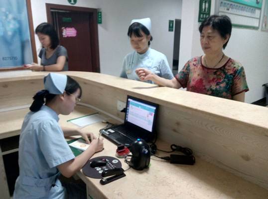 2、二樓服務(wù)臺分診后,醫(yī)師通過問診為病人開出手工處方。