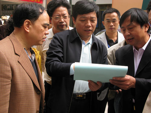 省衛(wèi)生廳來我院調(diào)研 發(fā)布時(shí)間:2008年11月5日 預(yù)覽:3977次 11月27日,省衛(wèi)生廳黨組書記肖策群率醫(yī)政、規(guī)財(cái)、婦社、人事等處室人員到市中心醫(yī)院開展調(diào)研活動(dòng),結(jié)合醫(yī)改廣泛征求意見,重點(diǎn)了解醫(yī)療機(jī)構(gòu)運(yùn)行機(jī)制問題以及如何解決以藥補(bǔ)醫(yī)問題。圖為市衛(wèi)生局局長趙安民(左一)和市中心醫(yī)院院長申錦林(右一)就醫(yī)院中長期規(guī)劃方案向調(diào)研組匯報(bào)。(鄒建軍)